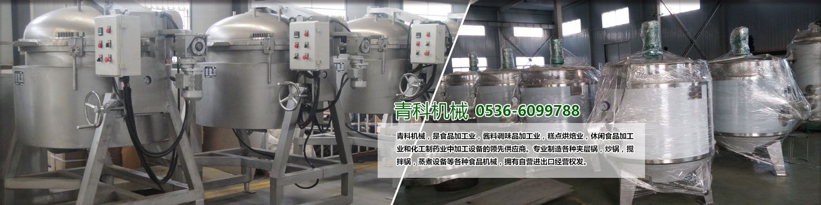 青科機械,是食品加工業,醬料調味品加工業,糕點烘焙業,休閑食品加工業和化工制藥業中加工設備的供應商。制造各種夾層鍋,炒鍋,攪拌鍋,蒸煮設備等各種食品機械,擁有自營進出口經營權,形成了集原材料供應,產品開發,工藝設計,生產制造,產成品檢驗,售后服務于一體的網絡體系。
